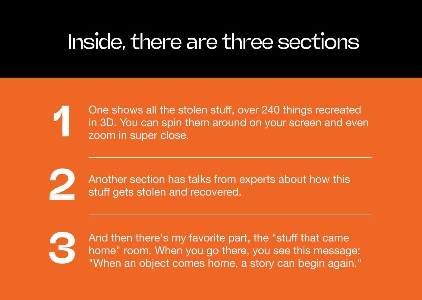 UNESCO opened this digital museum showing over 240 stolen items from 46 countries. Ancient sculptures. Old pots. Rare manuscripts. All the stuff that got stolen from where it belongs.